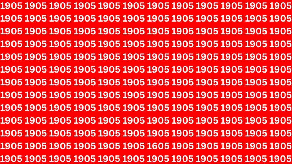 If you’re still having trouble finding the number 1605 here’s a helpful tip: look at the last digit. The number 1605 is different from 1905 by just one digit—the “5” instead of the “9.” This might seem like a small difference but it’s essential for identifying the correct number. To make it easier the number 1605 is in the 5th row and 3rd column from the left. When you look at the grid carefully you’ll see that this is the only number where the last digit is a “5” rather than a “9.” This small difference is what solves the puzzle. The secret to finding the number 1605 is to scan the image carefully and look for slight variations. While all the other numbers are 1905 this one is different because of the changed last digit. Once you find it you’ll see it clearly.