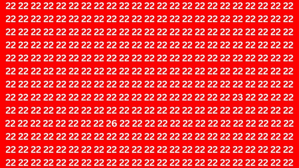 At first look, this optical illusion seems easy. However, the clever placement of 26 and 23 among dozens of 22s can confuse even the sharpest eyes. This challenge tests your attention to detail, visual focus, and speed. Only those with true “eagle eyes” can spot both numbers before the time runs out.