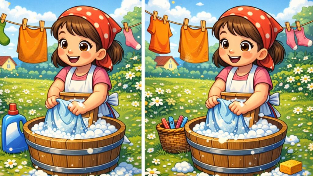 Spot the Difference Puzzle: Find 3 Changes in the Girl Washing Clothes Image in 8 Seconds
