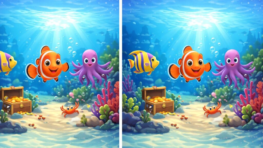 In sea-themed puzzles especially, treat the seafloor as a priority area. Designers often hide differences there because many players rush past it.