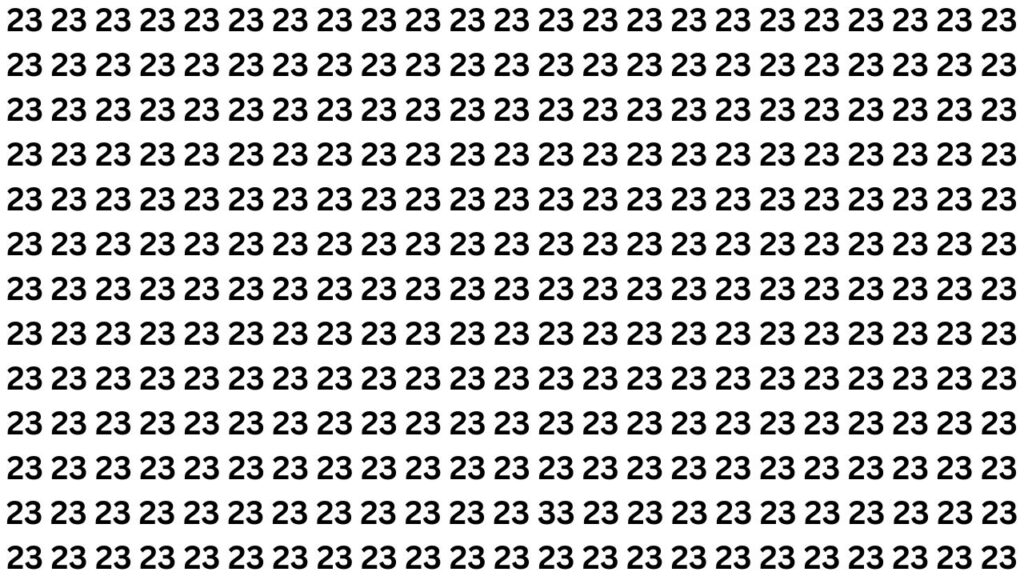 If you have already attempted the puzzle & need to verify your answer the location is as follows based on the information given. The number 3333 appears in the 5th row and is positioned 2nd column from the right side. When you examine that specific position closely you will see the difference right away. Instead of having a 22 followed by a 33 you will find a 33 followed by another 33. This repeated digit pattern forms a more uniform visual appearance compared to 2323. This uniformity can make it either more noticeable or easier to overlook depending on your scanning method.