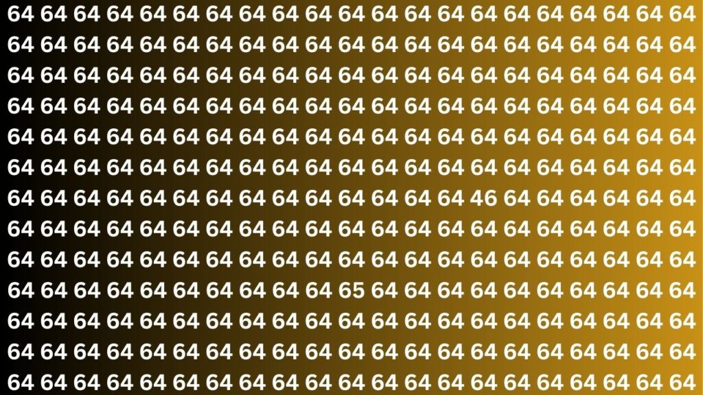 The biggest challenge in this optical illusion comes from how much the numbers 46 & 65 look like 64. Since 64 appears many times throughout the puzzle it becomes even harder to spot the different numbers. Your brain naturally looks for patterns and recognizable shapes so when it sees 64 repeated everywhere it tends to skip over 46 and 65 without noticing them. This puzzle really tests how well you pay attention to small details and whether you can spot minor differences in similar patterns.