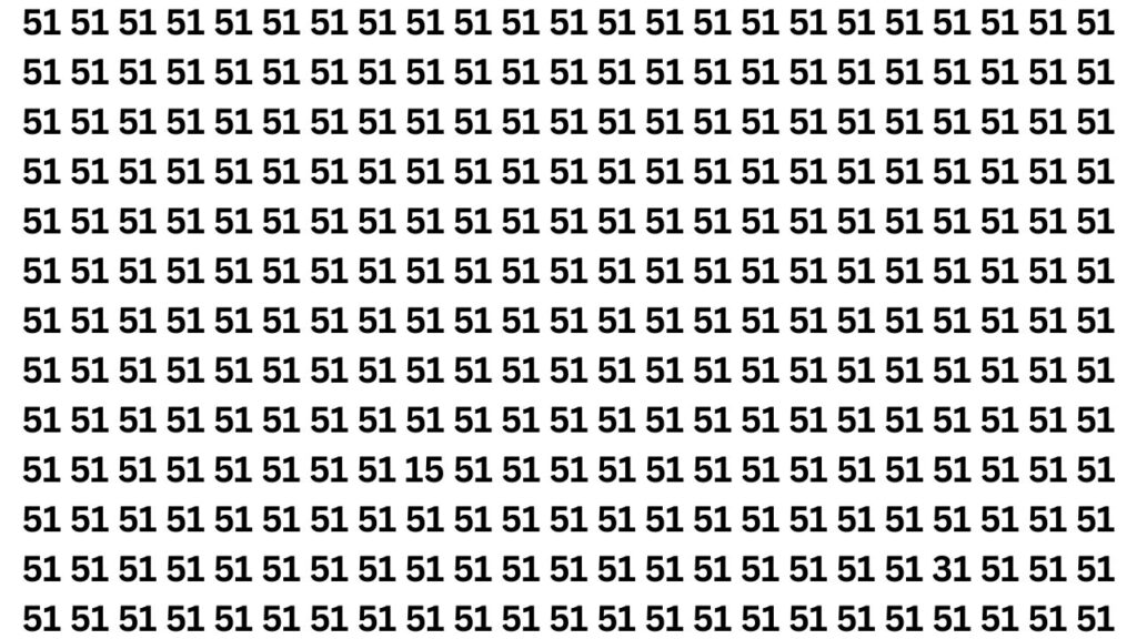 Begin by checking each row in order rather than looking at random spots. A structured method lowers the risk of missing important elements. Another useful technique is to narrow your eyes slightly or step back from the screen. This makes it easier to spot shapes that look different. You might also consider changing your approach. Rather than hunting specifically for 15 and 31, search for numbers that appear different from 51. The distinction might be small, but it becomes obvious once you see it. To overcome the visual trick you should move your eyes slowly while staying focused. Rather than reading every number completely, watch for anything that seems unusual. The different numbers often become more visible when you look at just the first or last digit instead of the entire number.